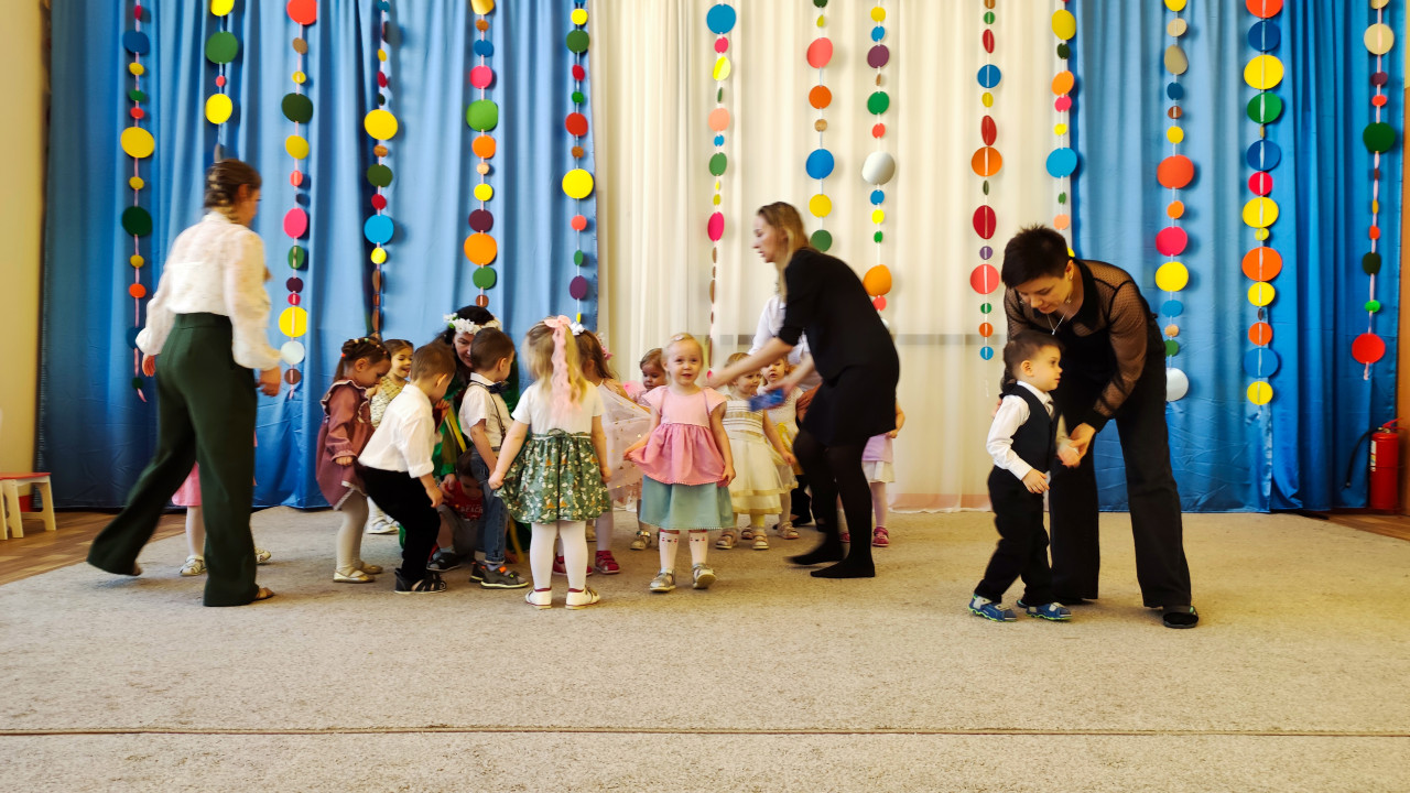 детский сад дети утренник праздник воспитатели дошкольники педагогика образование сцена музыка творчество декорации организация мероприятий танец движение зал выступление физическая активность обучение развитие игра музыкальное воспитание коллектив социализация педагог костюмы праздник в саду дошкольное образование группаПохожие фотографии