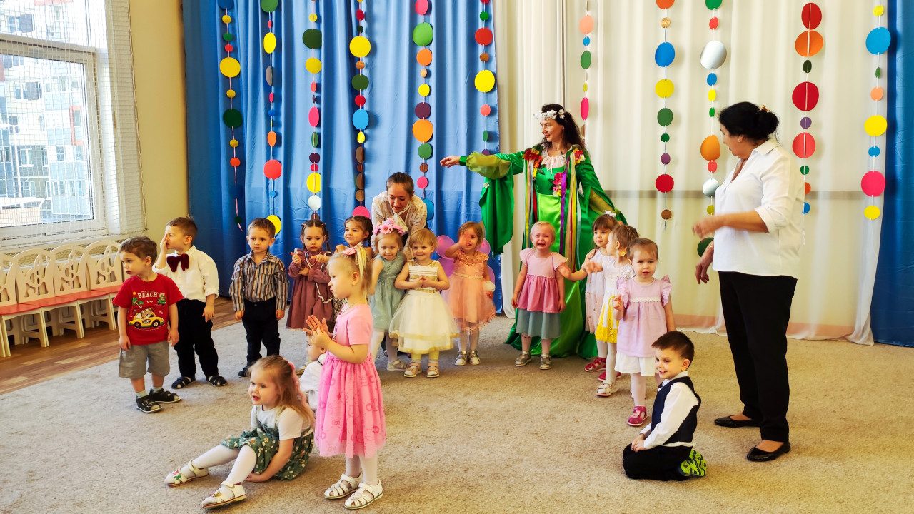 Группа детей на праздничном выступлении в дошкольном учреждении