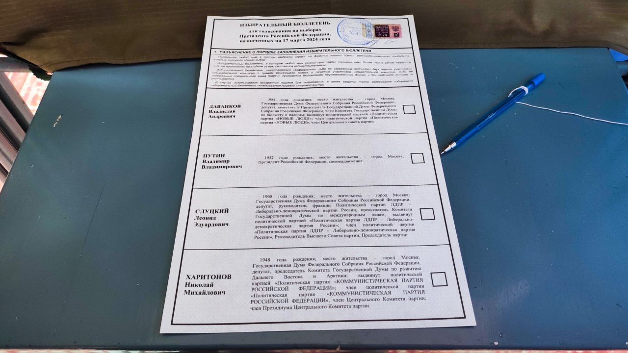Избирательный бюллетень на выборах Президента России 2024 года