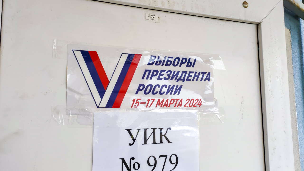 Вход в избирательный участок №979 с плакатом выборов президента России 2024