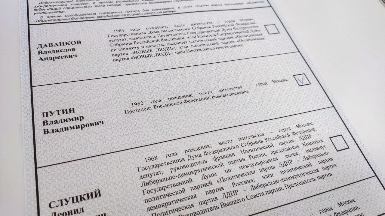 Бюллетень с отмеченным выбором на выборах президента России 2024 года