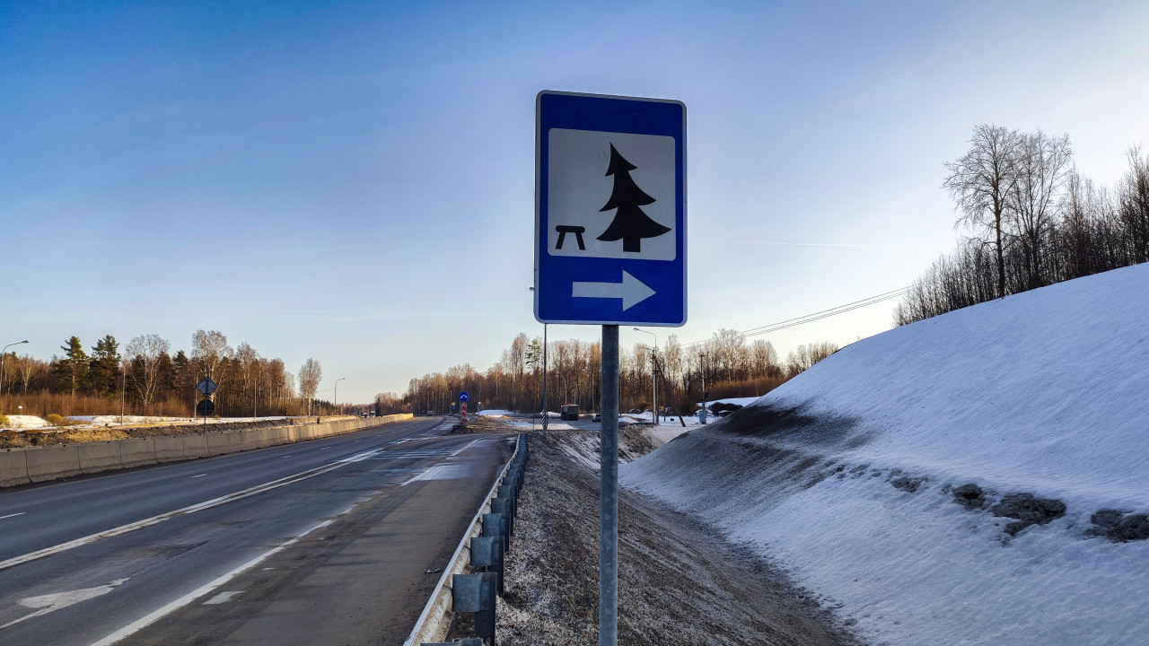 дорога дорожные знаки пдд движение обочина транспортная безопасность дорожный знак зона отдыха трасса Россия Ленинградская область снег зима путешествие транспорт дорожная безопасность направление указатель лес автопутешествие пиктограмма туризм инфраструктура автомобильная дорога региональная трасса дорожно указательный знак зимний пейзаж синий знак направление вправо дорожное фотоПохожие фотографии