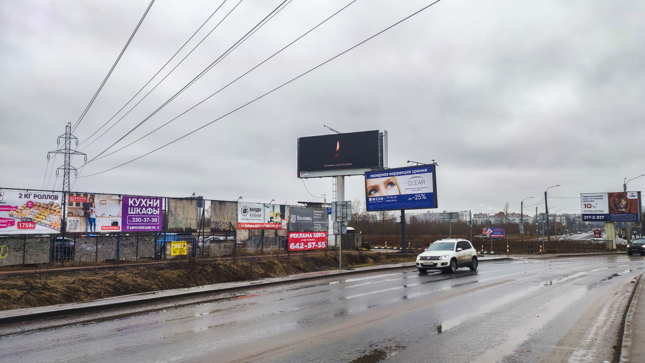 реклама щит билборд наружная реклама баннер город улица дорога автомобили электролиния пасмурно лужи мокрый асфальт Россия ЖК транспорт урбанизм инфраструктура серое небо зима весна архитектура городская среда автомобилизация провода пейзаж асфальт дождь билборды промышленная зонаПохожие фотографии