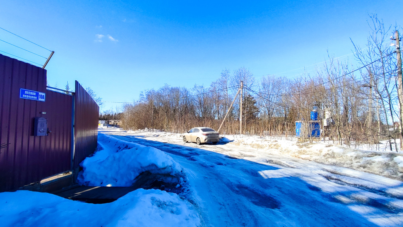 На снимке изображена загородная улица с частными домами и зимним дорожным покрытием, на заднем плане видна трансформаторная подстанция и проходящие воздушные линии. Слева забор и адресная табличка «Лесной переулок 10А», указывающие на жилую территорию. Такая сцена демонстрирует сочетание бытовой инфраструктуры и энергообъектов, характерное для малых населённых пунктов. Фото может быть использовано в публикациях о загородных сетях, электрификации и локальной инфраструктуре.