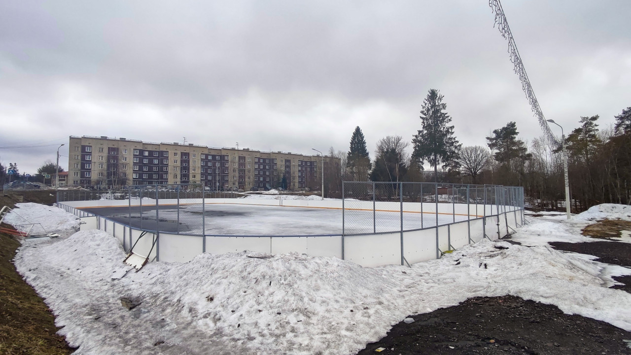 спорт хоккейная площадка каток лёд двор урбанистика инфраструктура дома жилой район Россия Санкт Петербург снег весна зима облачность спортплощадка ограждение металл уличные фонари архитектура бетон деревья досуг город благоустройство улица ландшафтПохожие фотографии
