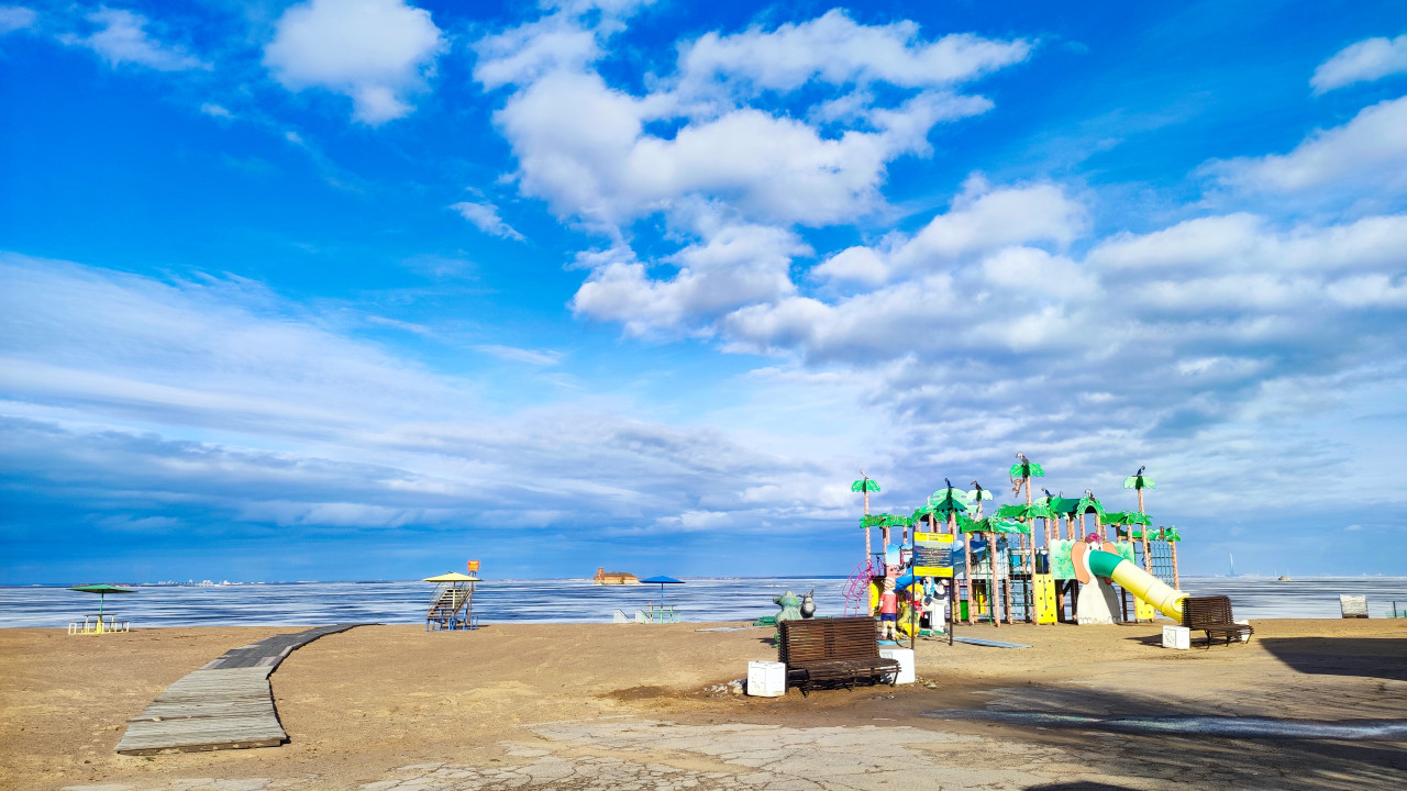 кронштадт финский залив балтика санкт петербург пляж настил песок детская площадка скамейки весна межсезонье побережье лёд замёрзшая вода облака небо отдых инфраструктура урбанистика туризм россия природа городской пейзаж север рекреация прибрежье Кронштадт Финский залив Балтика Санкт Петербург горка скамейка пейзаж Россия городская среда досуг климатПохожие фотографии