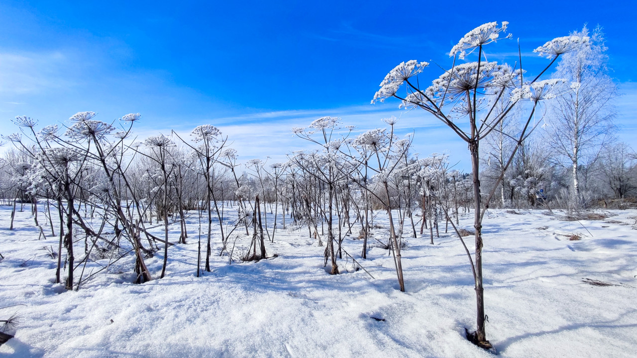зима иней мороз снег растения поле природа север флора ботаника холод облака небо пейзаж борщевик ясное небо экология январь февраль сезон климат деревья снежное покрытие зима в России утро морозный день природные формы зимняя флора сельская местностьПохожие фотографии