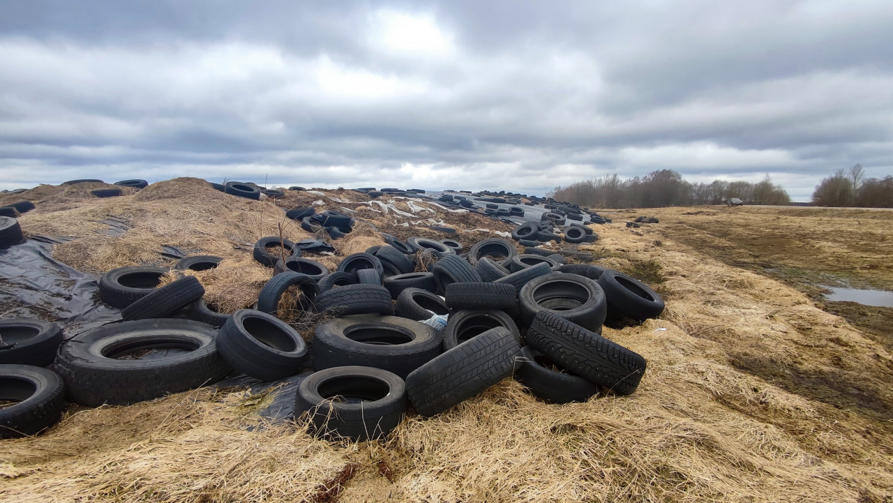 Силосное хранилище с тракторными и автомобильными шинами на укрытии
