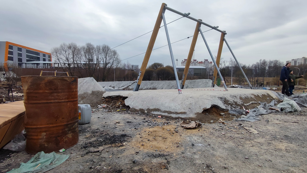 благоустройство благоустройство территории стройплощадка строительная площадка строительные работы строительство строительный участок стройка качели площадка урбанистика городская среда архитектура дети безопасность реконструкция инфраструктура модернизация строительные материалы металл бетон ржавая бочка оборудование парк жилые дома архитектурные объекты город развитие территория благоустройство парка процесс ремонтПохожие фотографии