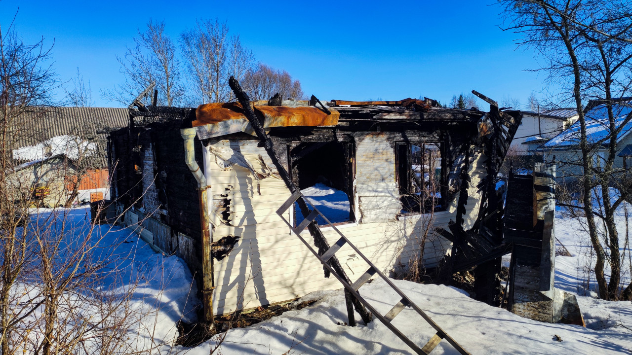 пожар разрушение сгоревший дом зима снег пригород руины частный сектор последствия обугленные стены аварийностьПохожие фотографии