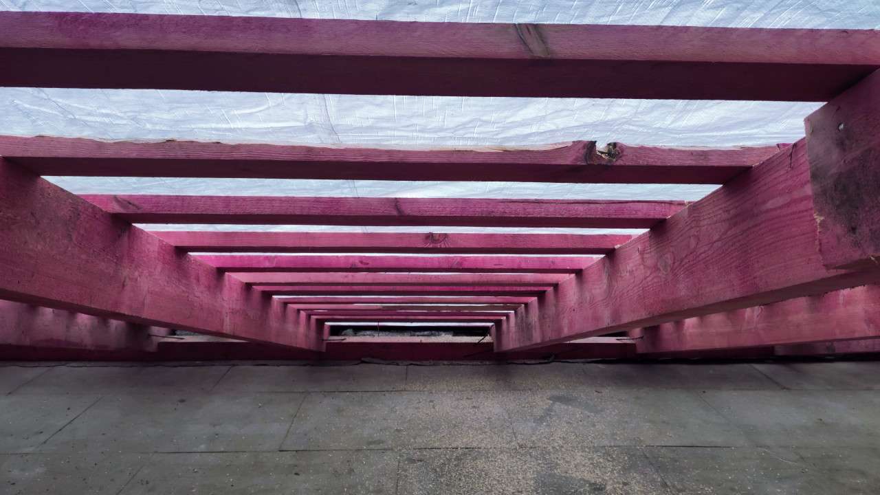 Измерение толщины стяжки на плоской крыше здания