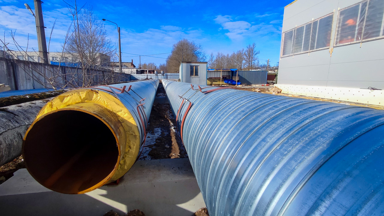 Уложенные трубы теплотрассы в металлической оболочке
