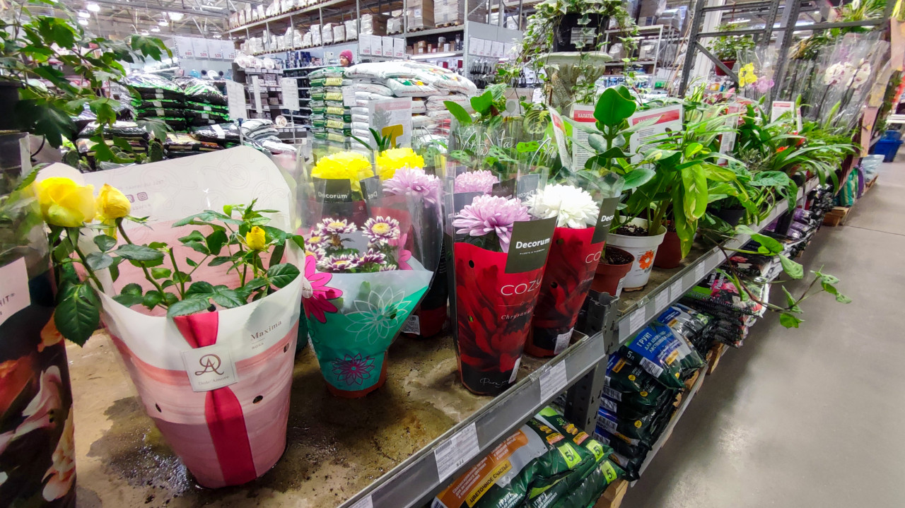 Ассортимент самокатов в торговом зале с витринами и указателями