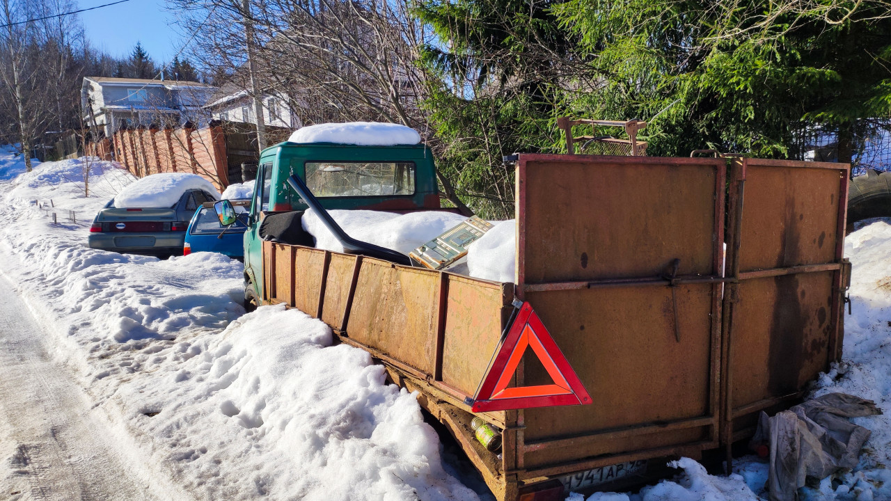 Прицеп для машины на парковке рядом с жилым комплексом