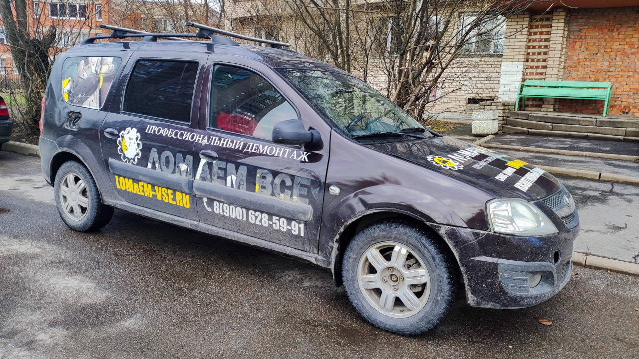Задняя часть грязного автомобиля Renault Sandero на парковке