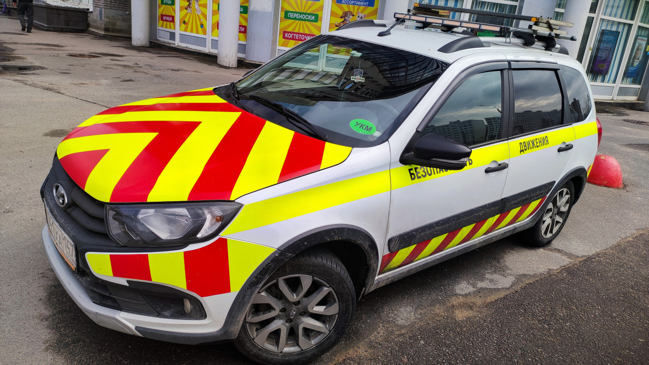 Автомобиль Росавтодора на парковке у дорожного сервиса