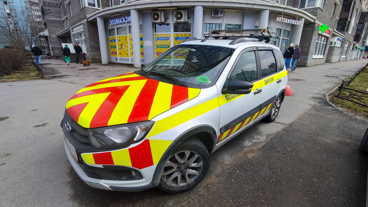 Машина ГИБДД на месте ДТП у супермаркета «Перекресток»