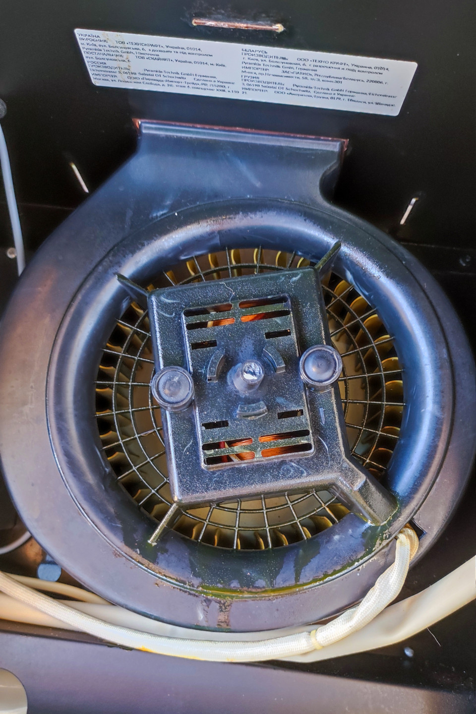 Вентилятор кухонной вытяжки с защитной решёткой и маркировкой