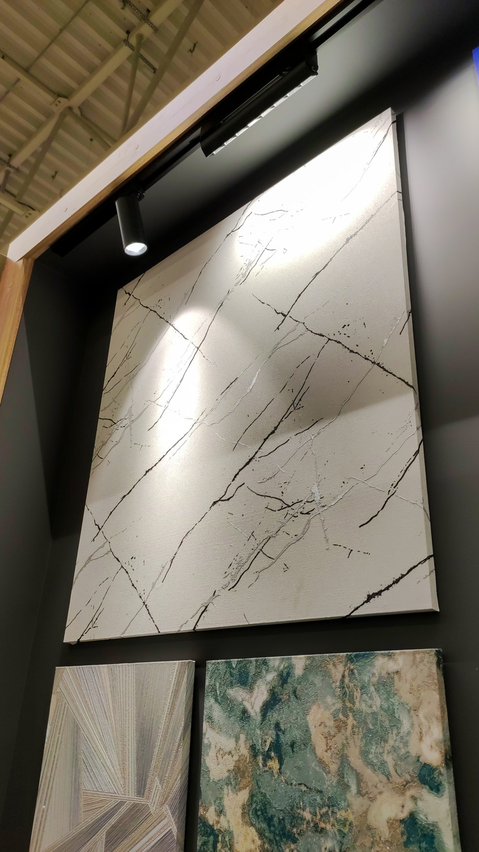 обои интерьер настенные покрытия текстура рельеф декоративные обои дизайн отделка строительный магазин образец материал отделочные материалы узор декор интерьерная отделка стенд образцы выставка освещение мрамор абстракция зелёный серый магазин строительные материалы интерьерная экспозиция каталог флизелиновая основа виниловые обои подсветка потолок современный интерьер коллекция материалыПохожие фотографии