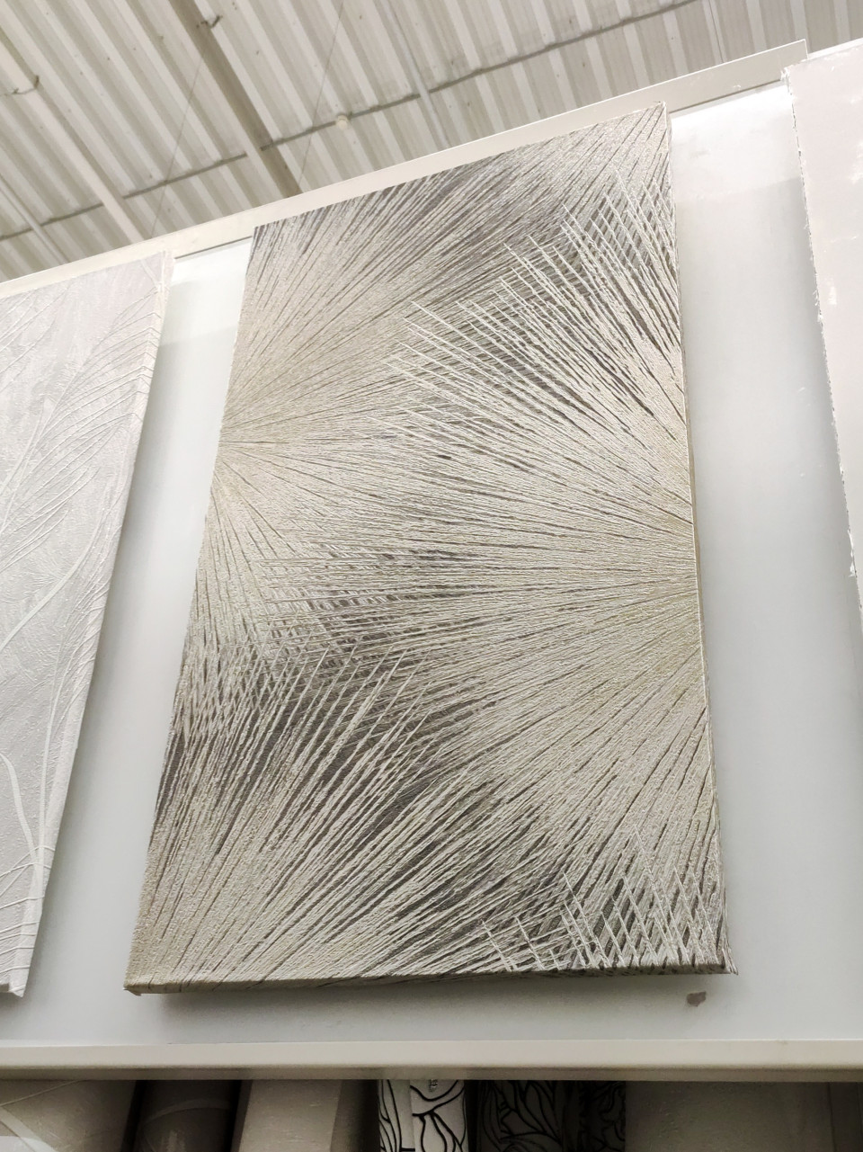 обои интерьер настенные покрытия текстура рельеф декоративные обои дизайн отделка строительный магазин образец материал отделочные материалы узор декор интерьерная отделка геометрия лучи серебристый бежевый дизайн стен интерьерное фото флизелиновая основа виниловые обои тиснение современный дизайн освещение художественный орнамент обойный стенд интерьерная текстураПохожие фотографии