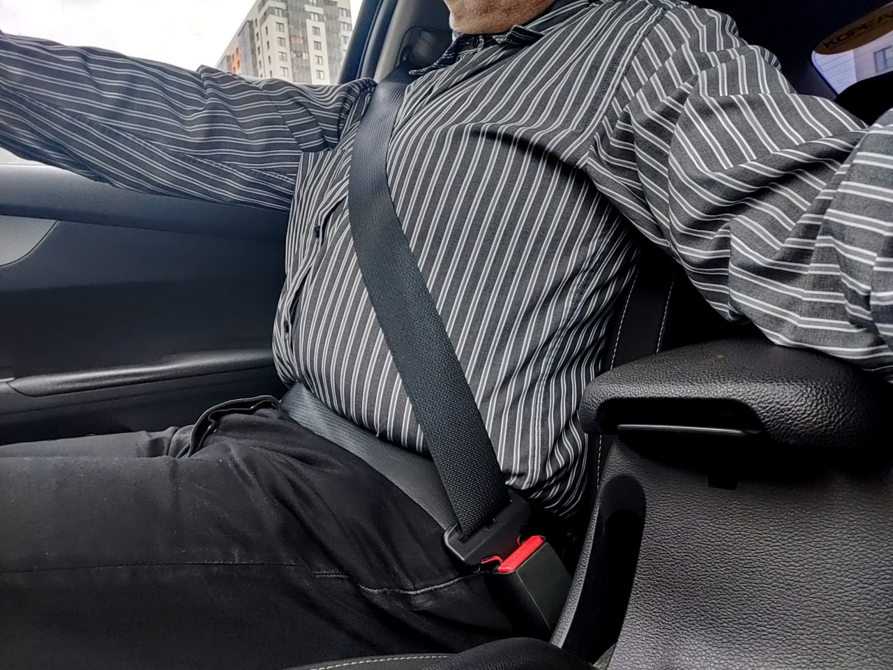 Ремень безопасности, закреплённый на водителе в движущемся автомобиле