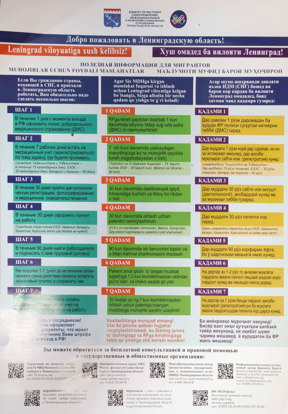 Информационный плакат для мигрантов с правилами пребывания и оформления документов
