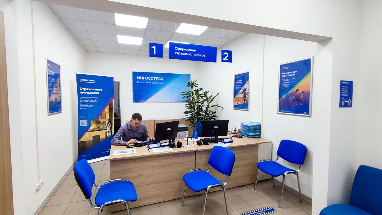 Клиентская зона офиса «Ингосстрах» с рабочими местами сотрудников