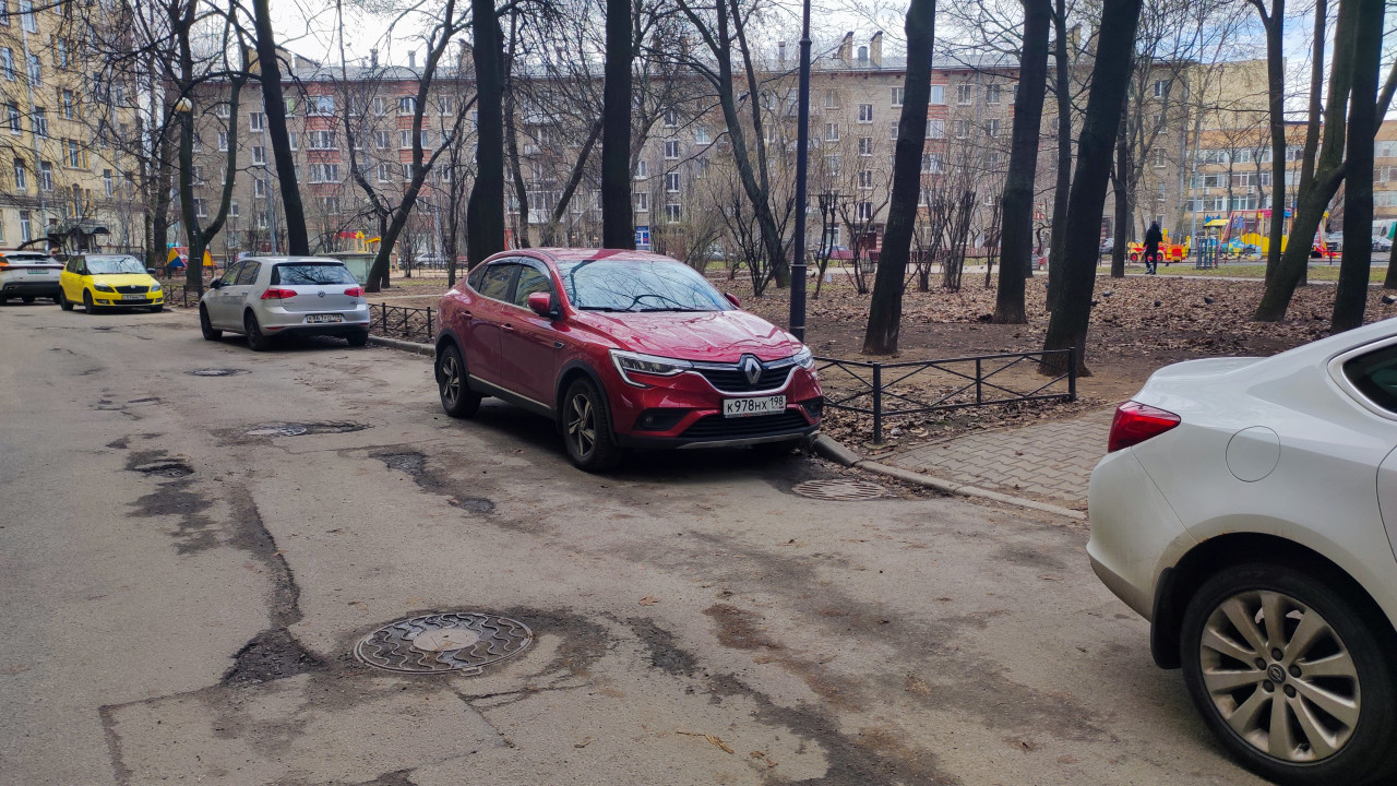 Парковка вдоль дворовой дороги у сквера и жилых домов