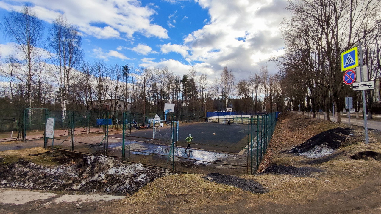спортплощадка ограждение спорт инфраструктура весна спортивная зона двор городская среда физкультура ворота баскетбольная стойка дорожные знаки пешеходный переход парковка снег деревья жилые дома городской ландшафт улица сетка резиновое покрытие площадка дети зона отдыха активность тротуар машины обочина погода облака безопасностьПохожие фотографии