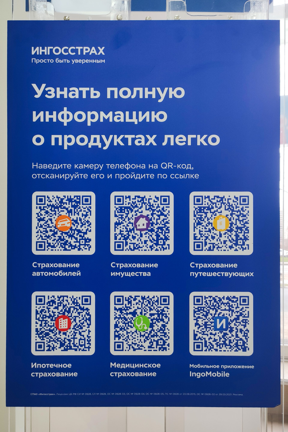 страхование ингосстрах реклама услуги информация pos материалы коммерческая организация маркетинг Ингосстрах QR коды страховые продукты постер офис интерьер автомобили имущество путешествия ипотека медицинское страхование мобильное приложение фирменный стиль цифровые сервисы клиентская информация корпоративная среда стена держатель компания бренд навигацияПохожие фотографии