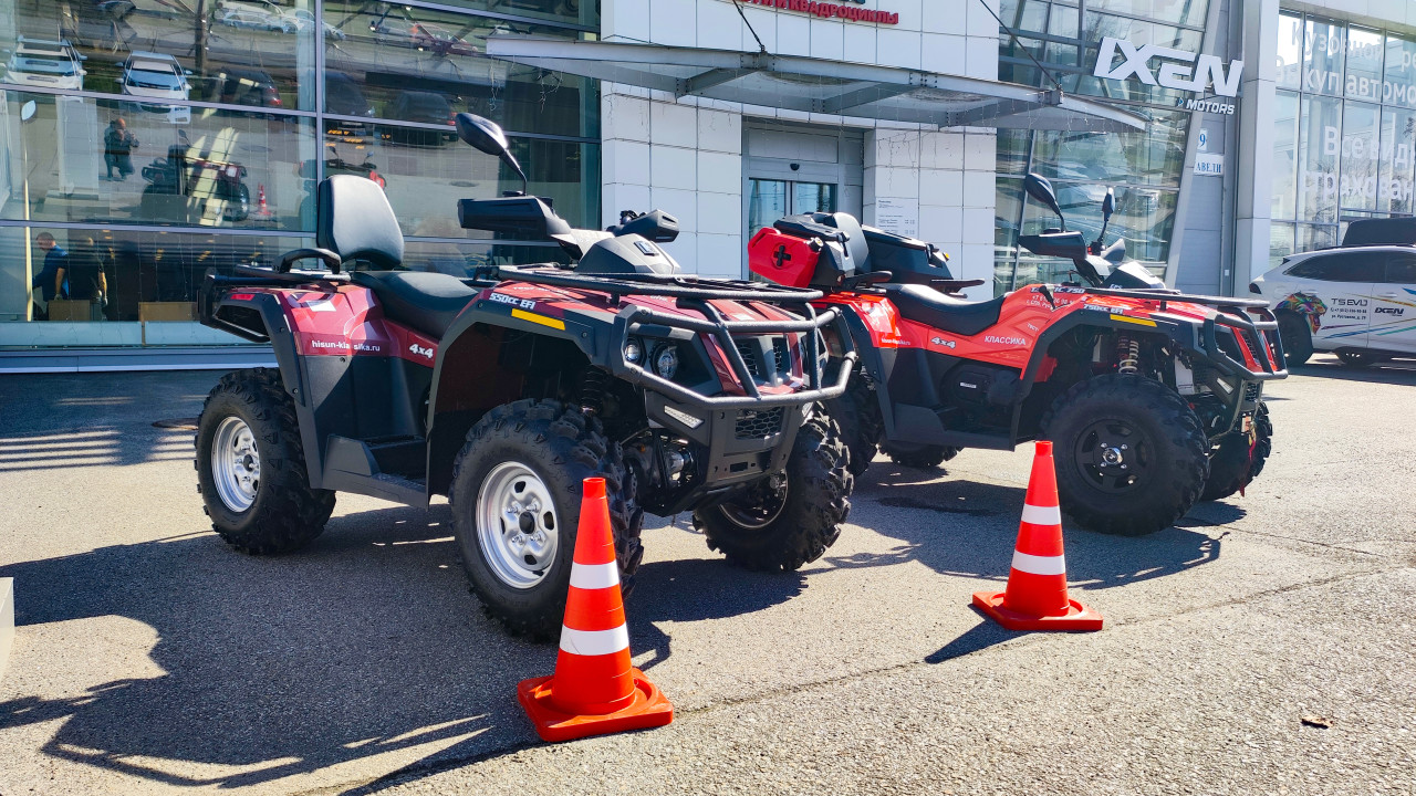 квадроцикл мототехника atv 4x4 внедорожная техника транспорт демонстрация тест драйв дилерский центр парковка бренд мотовездеход квадроциклы мотосалон стеклянный фасад демонстрационная зона продажа техники уличная площадка дорожные конусы коммерческое здание отражение автомобили городской объект экспозиция сервис инфраструктура входная группа наружная съемка техника на улице торговая площадка современная архитектура городской пейзажПохожие фотографии