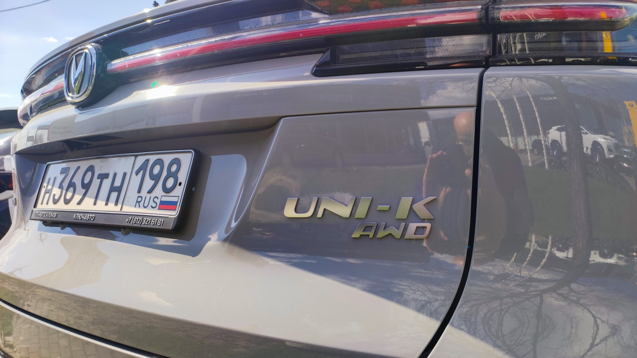Эмблема Changan UNI-K AWD и фрагмент задней части автомобиля