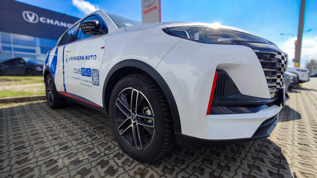 Передний ракурс кроссовера Changan CS55 Plus на парковке