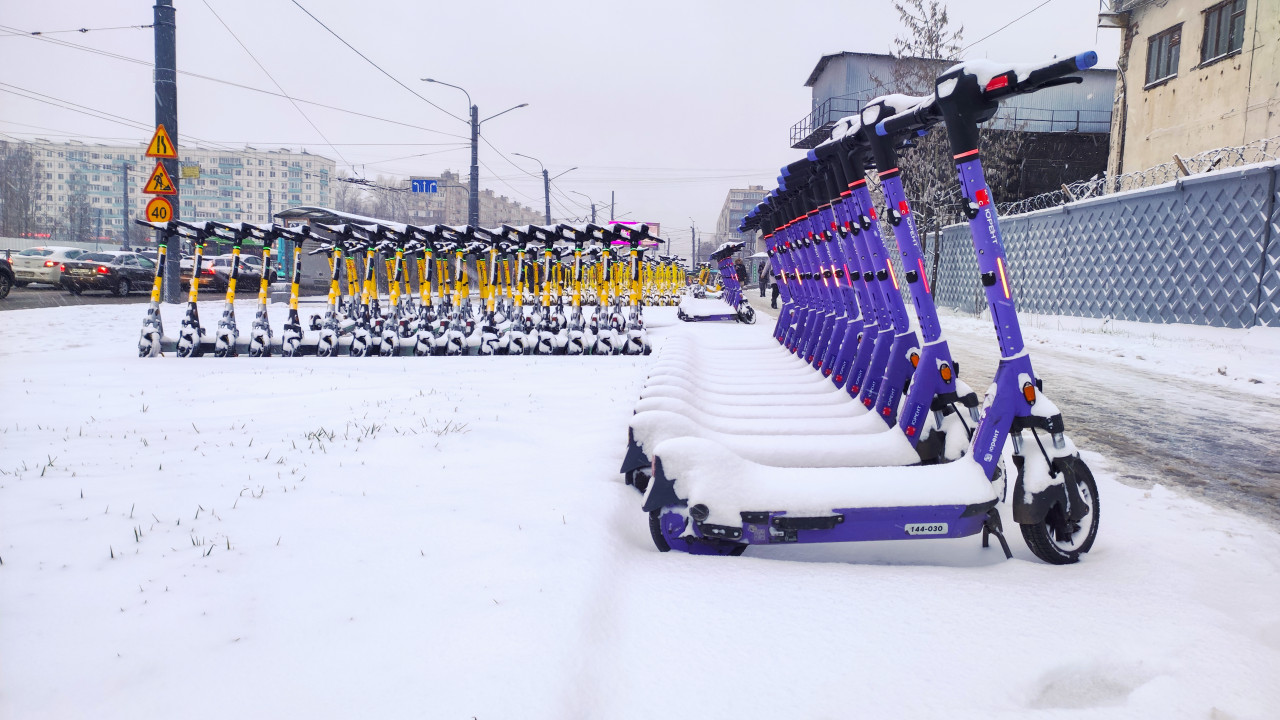 электросамокаты прокат микромобильность зима снег город транспорт инфраструктура городской пейзаж уличная сцена холод городской транспорт тротуар урбанистика Юрент Whoosh аренда мобильность техника дорога машины контактная сеть дорожные знаки жилые дома многоэтажки сервис снегопад мегаполис погодные условия промышленная зона сервис арендыПохожие фотографии