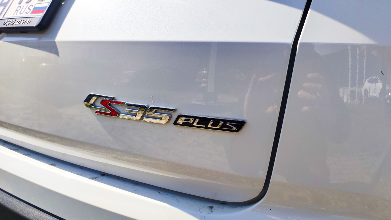 Хромированная эмблема CS35 Plus на белом кузове автомобиля Changan