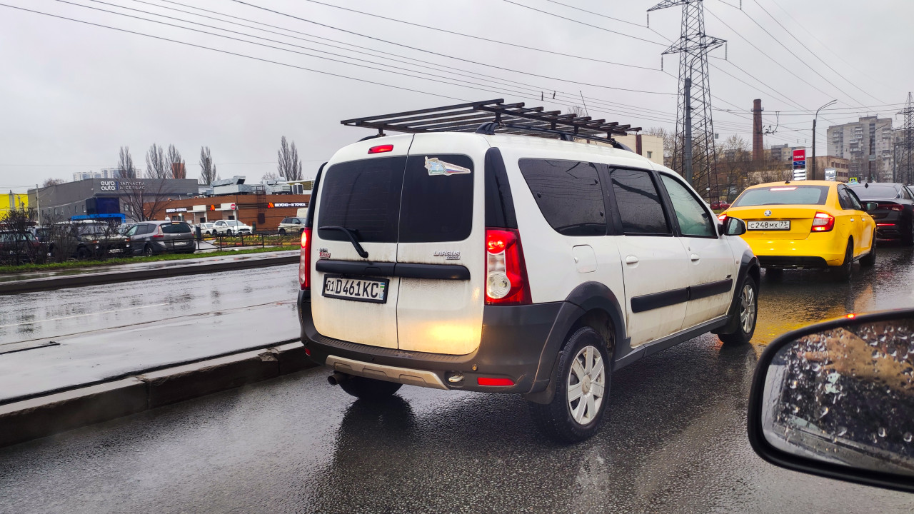 Lada Largus Cross в дорожном заторе на мокрой улице