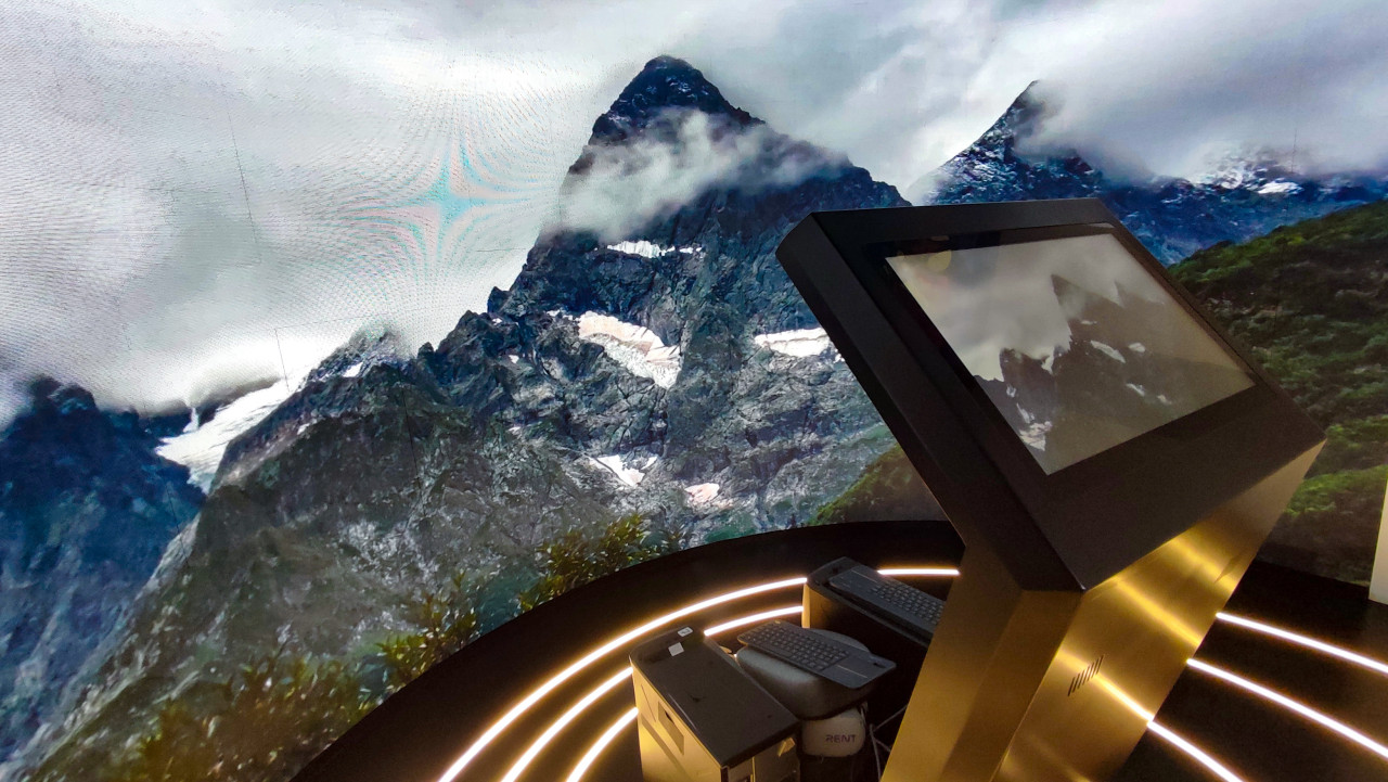 Панорамный вид на скалистые вершины в интерактивной зоне стенда
