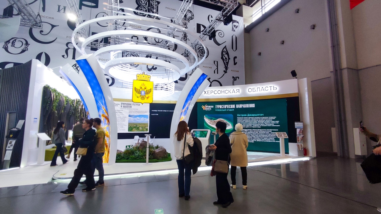 вднх павильон 75 выставка россия форум экспозиция стенд презентация посетители общественное пространство региональные проекты событие выставочный центр выставочная экспозиция выставка ВДНХ Регионы России Херсонская область региональный стенд туристические направления природные ресурсы остров Джарылгач герб световая конструкция Москва посетители информационный стенд презентационная зона межрегиональный форум региональная культура оформление стенда выставочная площадка презентация регионов туристический потенциал информационные материалы выставочное пространствоПохожие фотографии