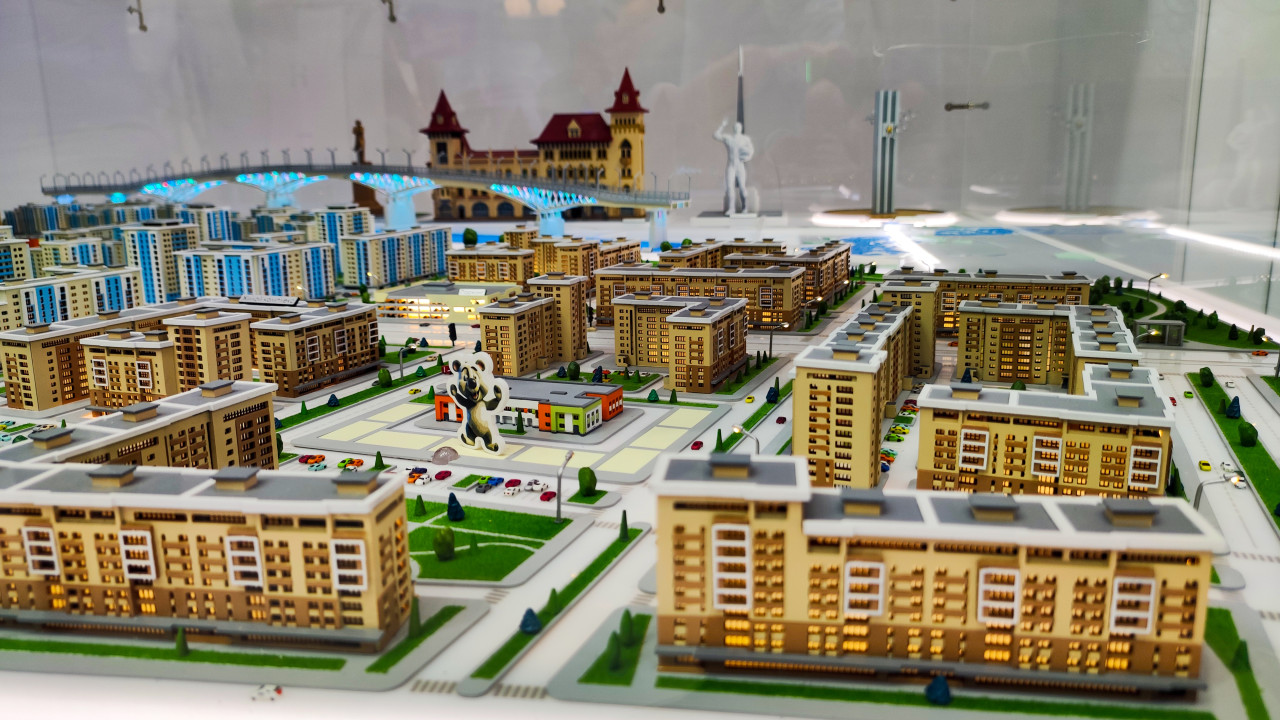 вднх выставка россия макет миниатюра модель экспозиция презентация демонстрация город урбанистика архитектура городской квартал Олимпийский Мишка талисман Олимпиада 80 здание жилые дома дороги мост подсветка ВДНХ павильон 75 выставка форум Россия моделирование градостроительство инфраструктура общественные пространства развитие территорий проектированиеПохожие фотографии