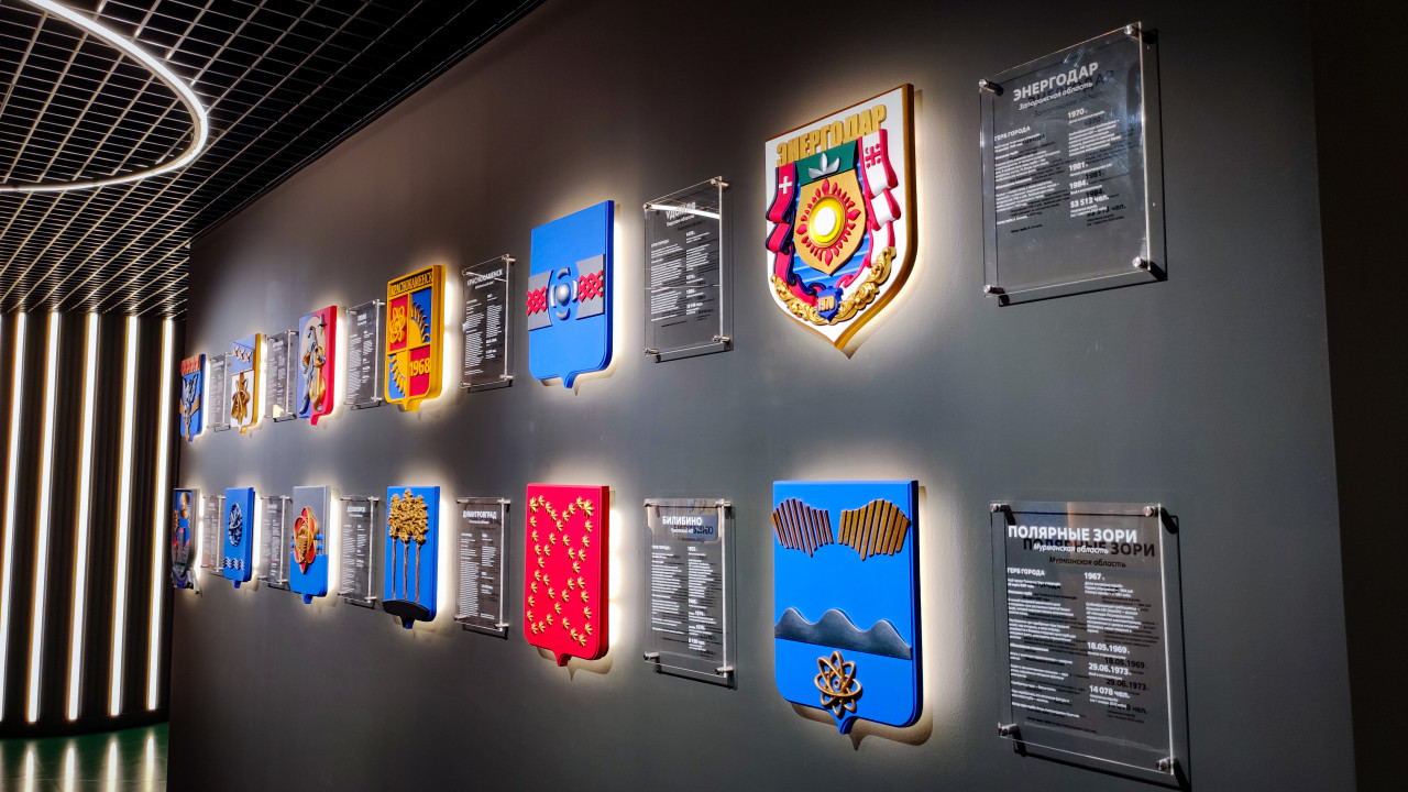 Стена гербов городов атомной отрасли России в павильоне «АТОМ»