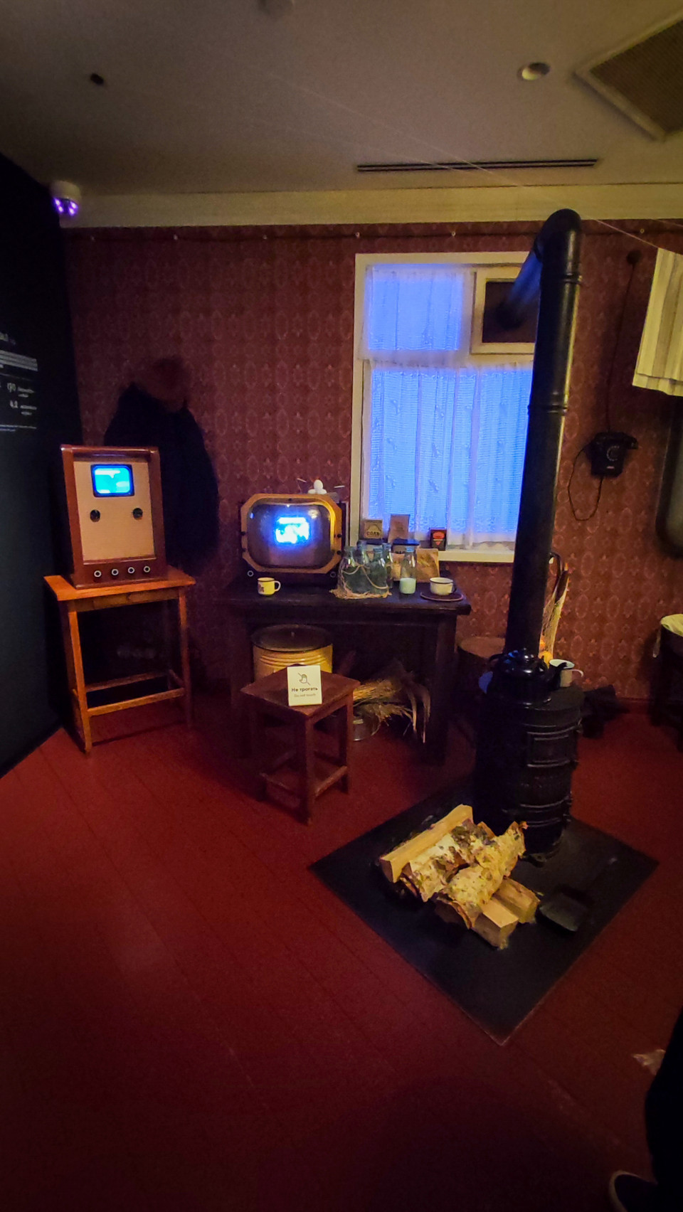 Историческая зона павильона «АТОМ» с ретротелевизорами и печью