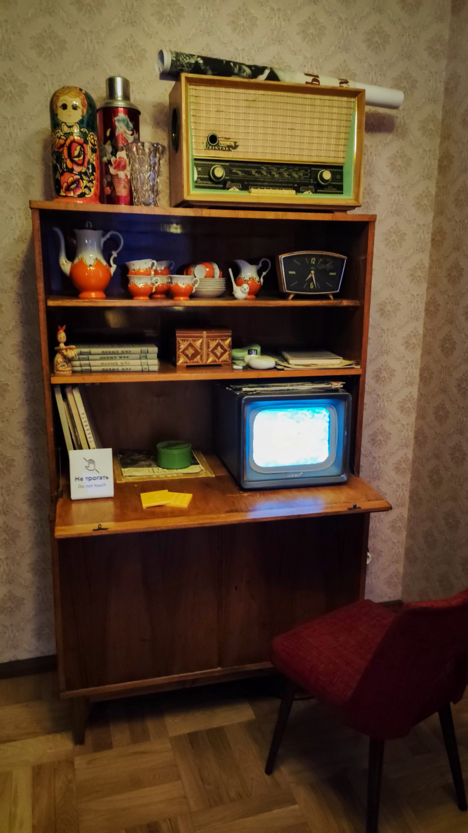 вднх павильон атом выставка россия ретроинтерьер музейная экспозиция историческая реконструкция предметы быта интерьерная инсталляция ретродизайн культура прошлого тематическая зона экспозиционное пространство интерьер прошлого века интерьер ретро шкаф радио Dzintars телевизор СССР посуда книги часы стул экспозиция музей антиквариат бытовая техника середина века интерьер прошлого ламповая техника советский быт мебель обои реконструкция коллекция советский дизайн предметы интерьера история техникиПохожие фотографии