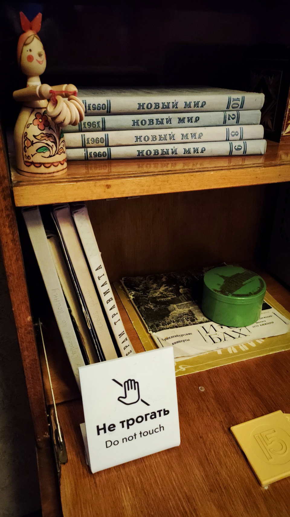 Журналы «Новый мир» и табличка «Не трогать» в ретро-интерьере