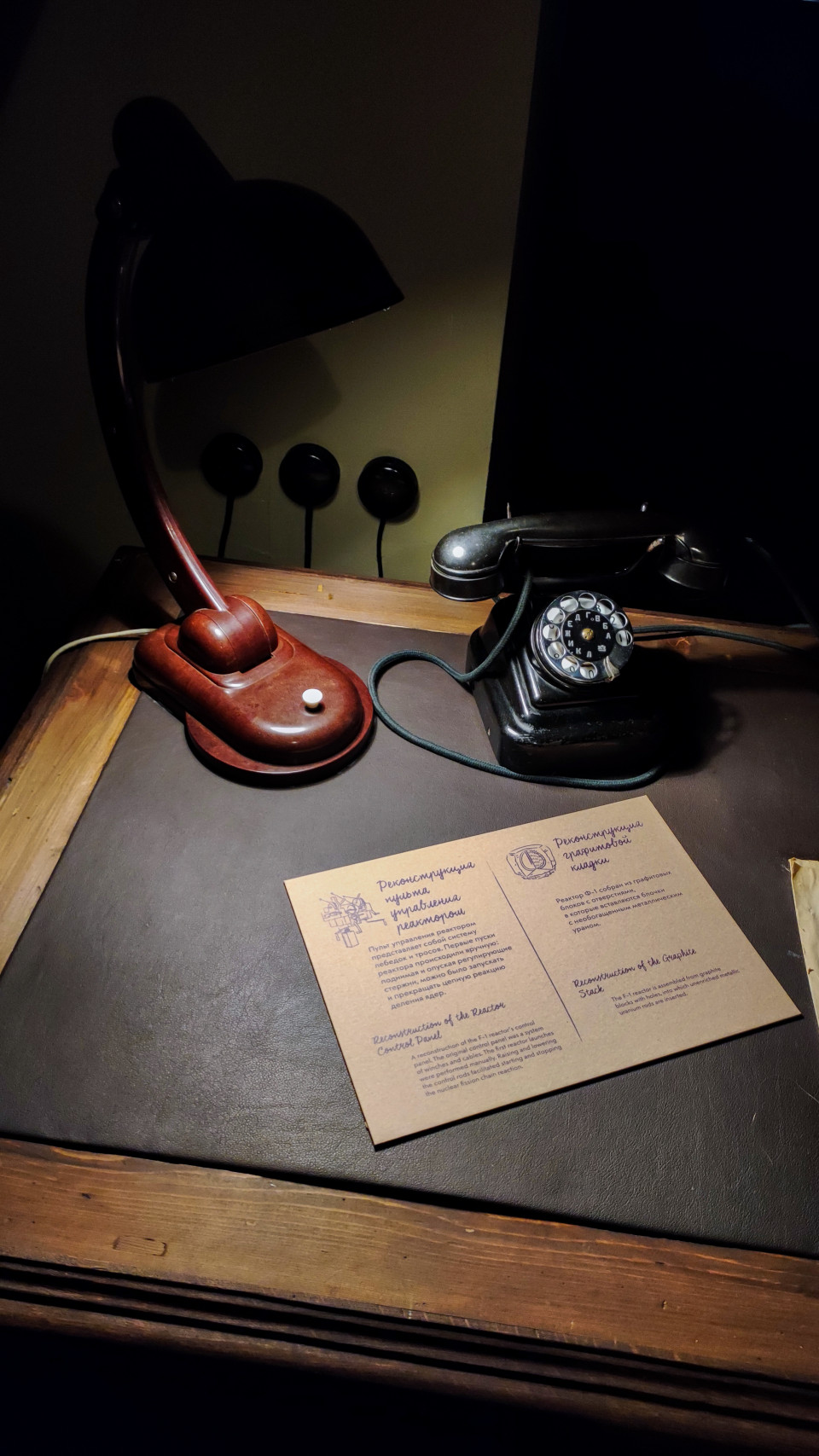 Настольная лампа и дисковый телефон в реконструкции рабочего места учёного