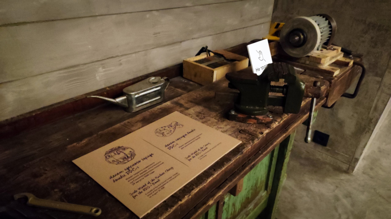 Рабочий верстак с инструментами и тисками в павильоне «Атом»