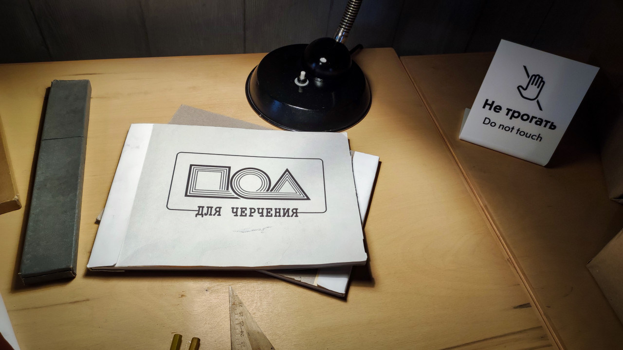 Тетради для черчения и настольная лампа в инженерной зоне павильона «Атом»
