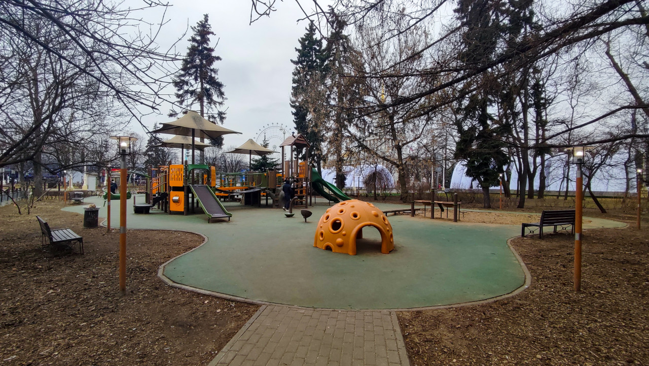 Игровая зона у входа в парк ВДНХ в межсезонье