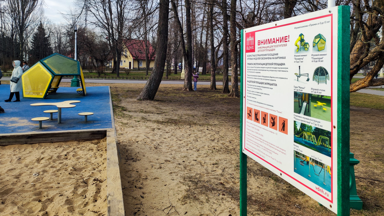 благоустройство детская площадка детские развлечения детский отдых детский досуг детское оборудование игровая зона игровое оборудование игровая площадка игровой комплекс развлечение физическая активность ВДНХ Москва информационная табличка детская площадка правила безопасность оборудование песочница модульный комплекс родители дети общественное пространство парк благоустройство инфраструктура зона отдыха весна деревья посетители урбанистика семейный отдых инструкция игровые элементы городской парк модернизация рекреация детский досугПохожие фотографии
