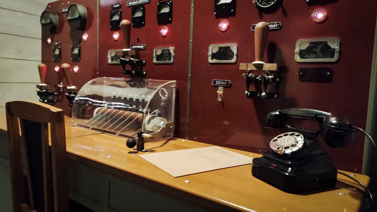 Рабочая зона исторического пульта управления с телефонным устройством