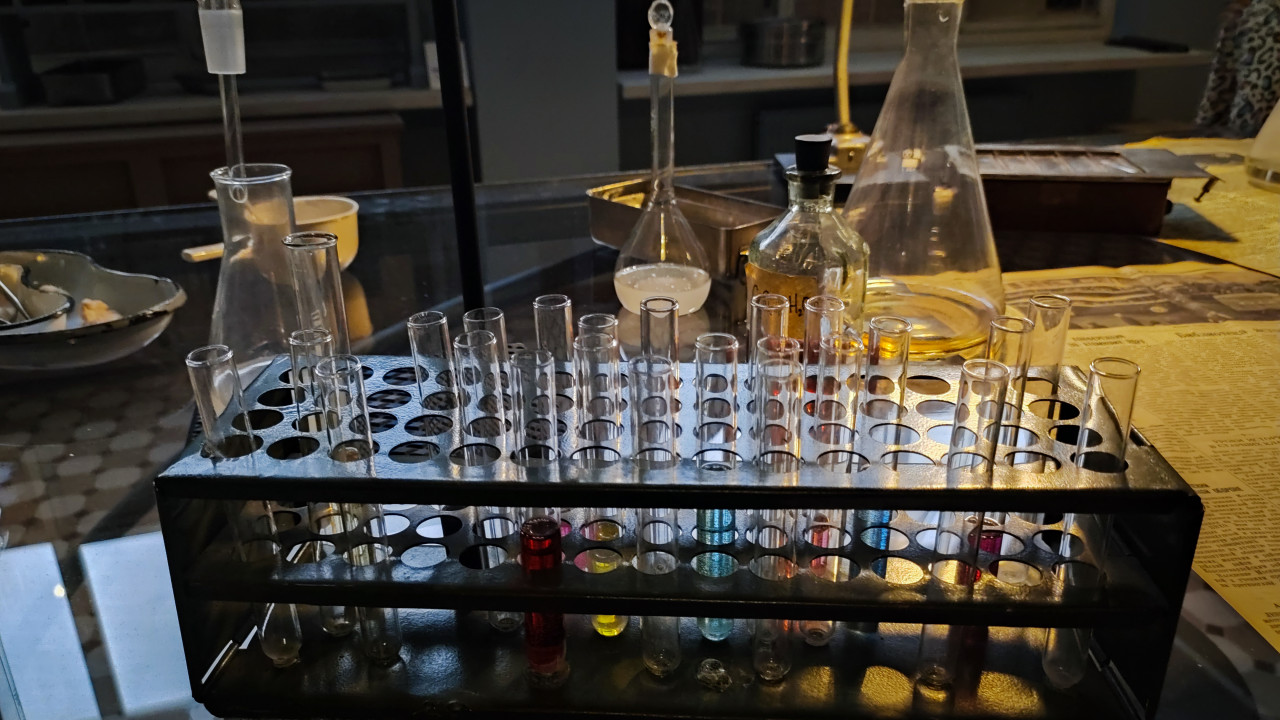 Стойка с пробирками и лабораторные реактивы в зоне «Атомариум»